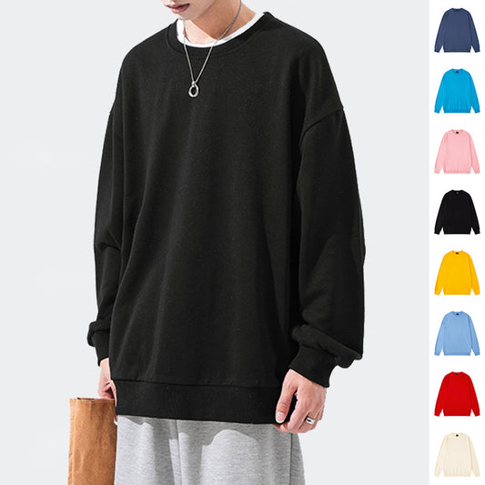 Men's Solid Color Pullover Sweatshirt Loose Round-neck Top Couple College Style Solid Color Clothes