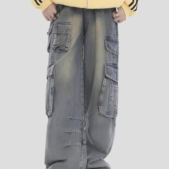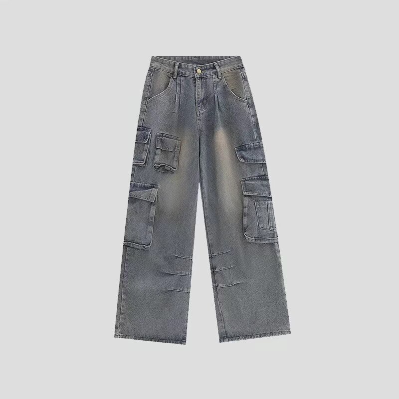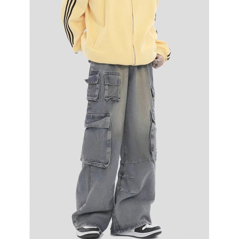 American Retro Multi-pocket Straight Cargo Jeans