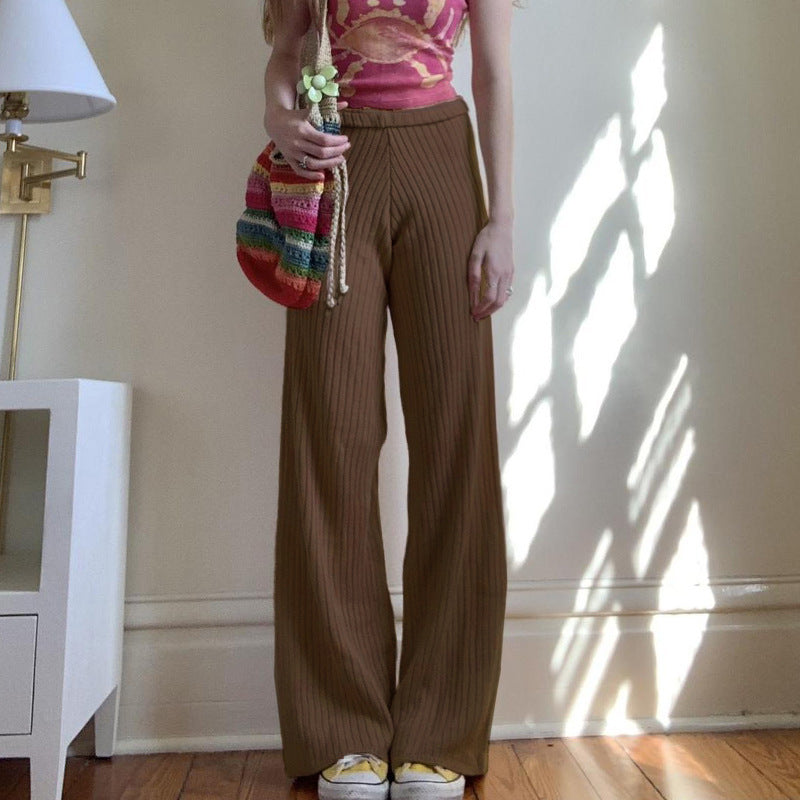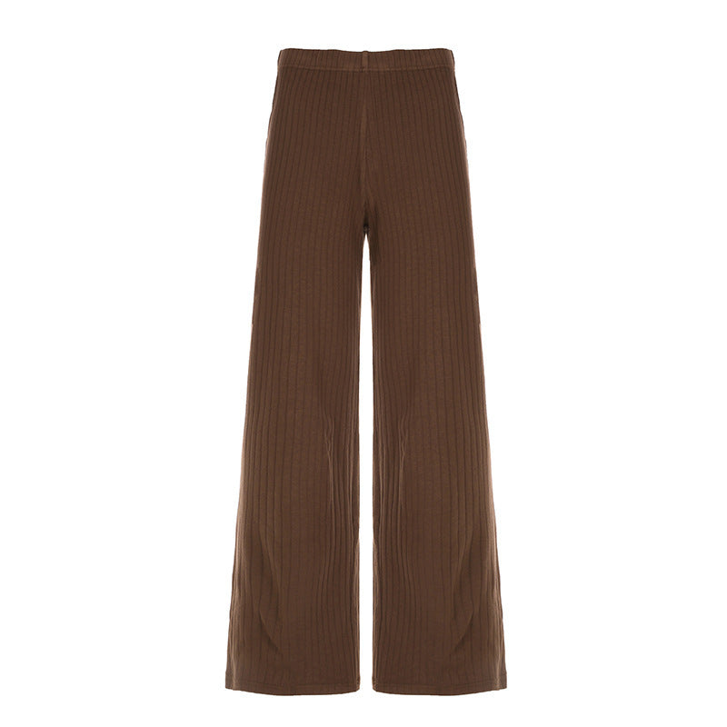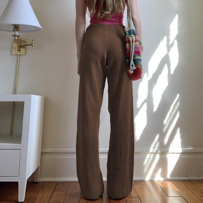 American Retro Solid Color Rib Fabric Basic Knitted Trousers