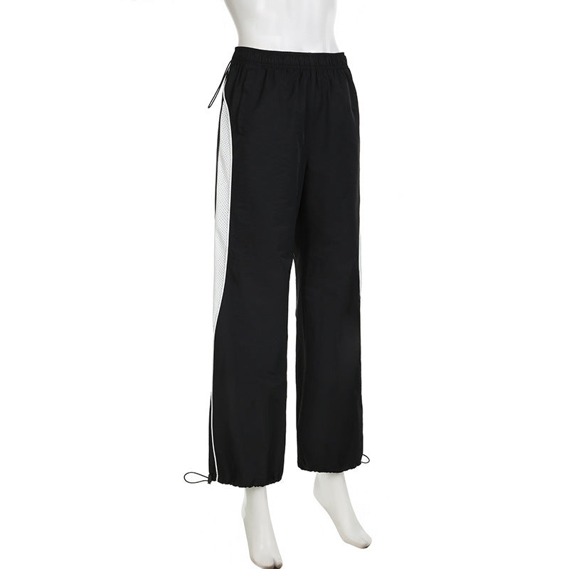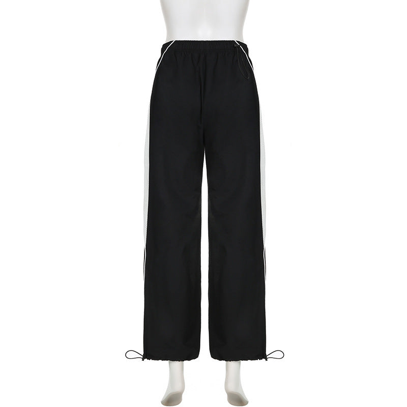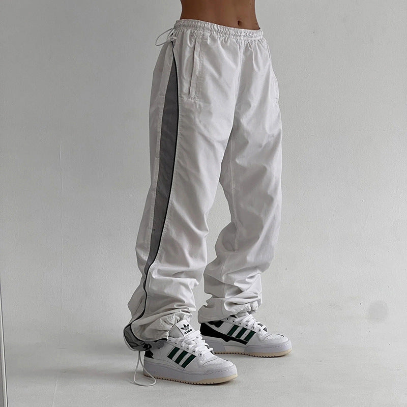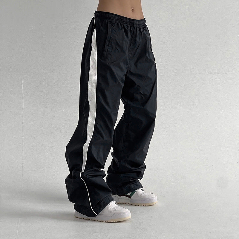 American Street Style Stitching Lightweight Woven Pants Low Waist Loose Casual Pants