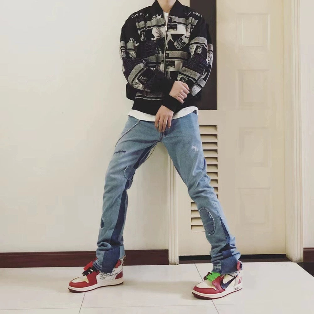 Bootleg Pants Type Gd Wind Split Stitching Patch Denim