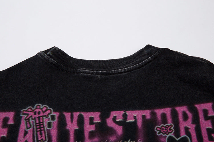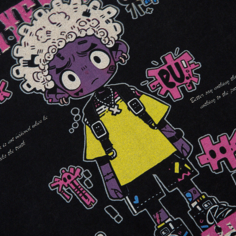 Cartoon Anime Print Distressed T-shirt For Men