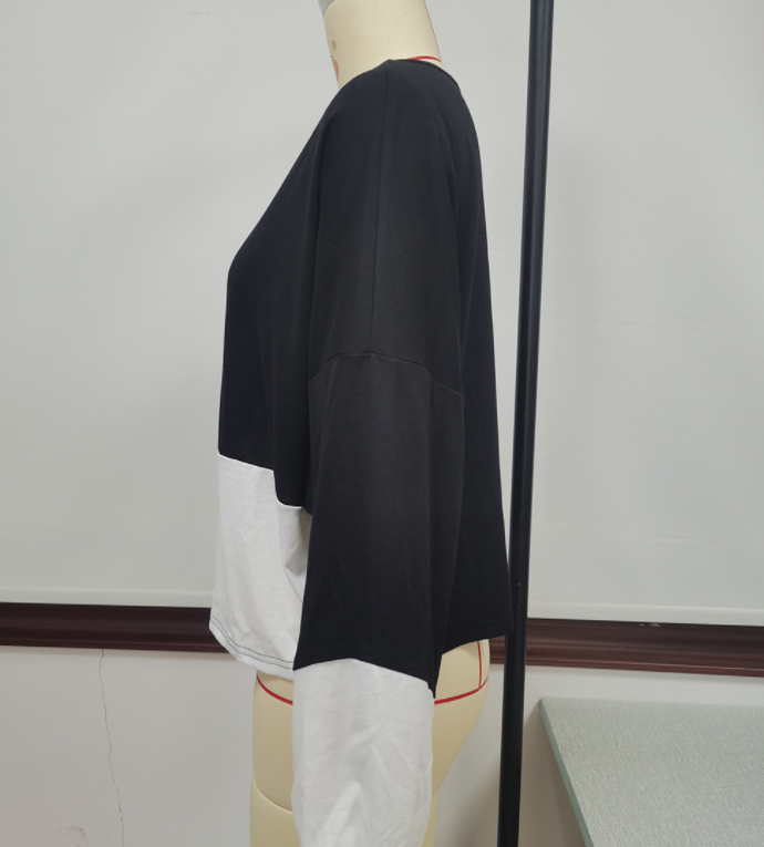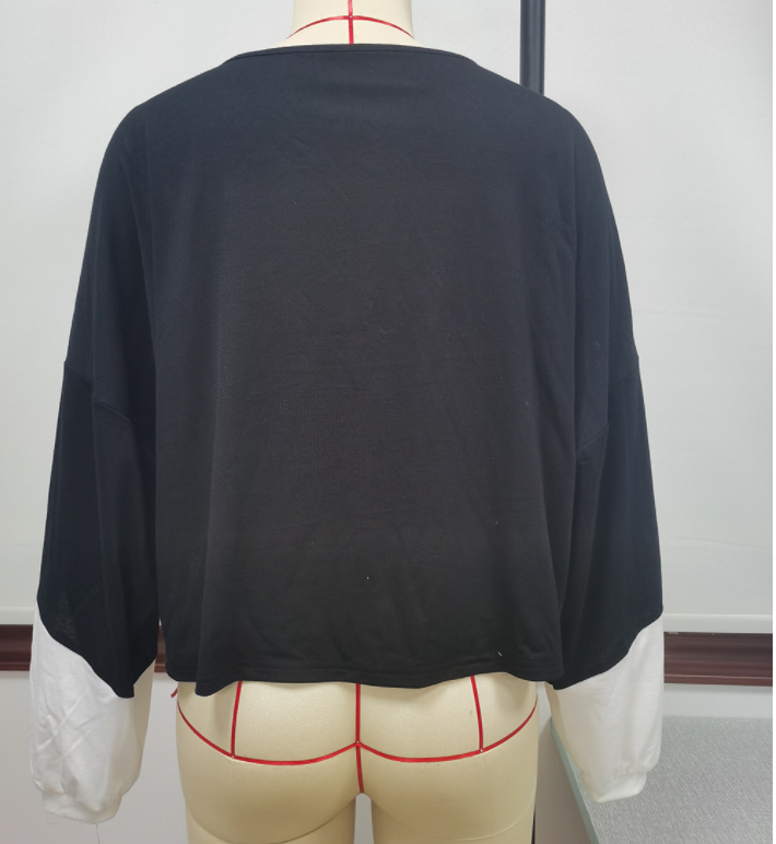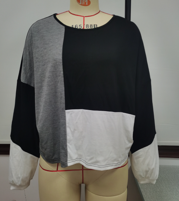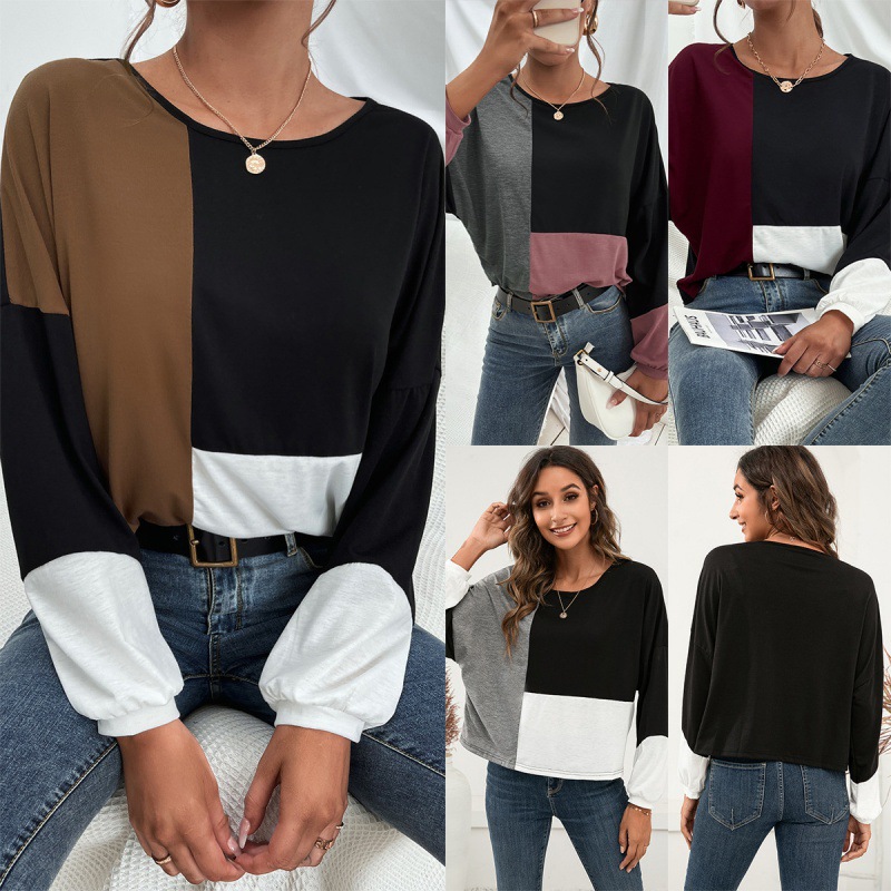 Casual Color Matching Round Neck Pullover Long Sleeve T-shirt