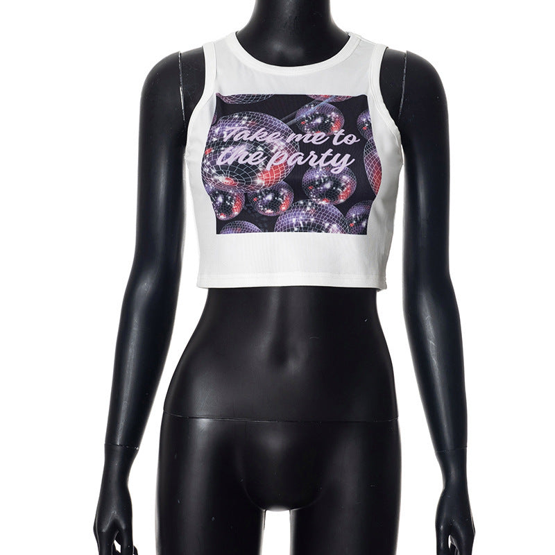 Comfortable Round Neck Letter Print Vest Sleeveless Midriff-baring Top