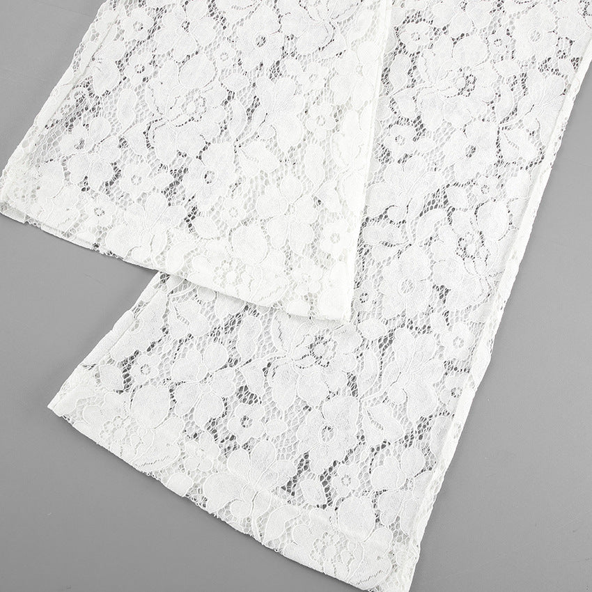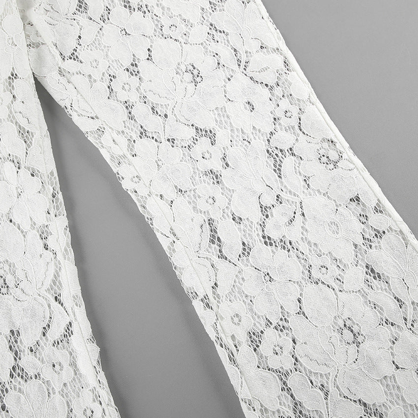 Cotton Lace White Jacquard See-through High Waist Casual Flared Pants
