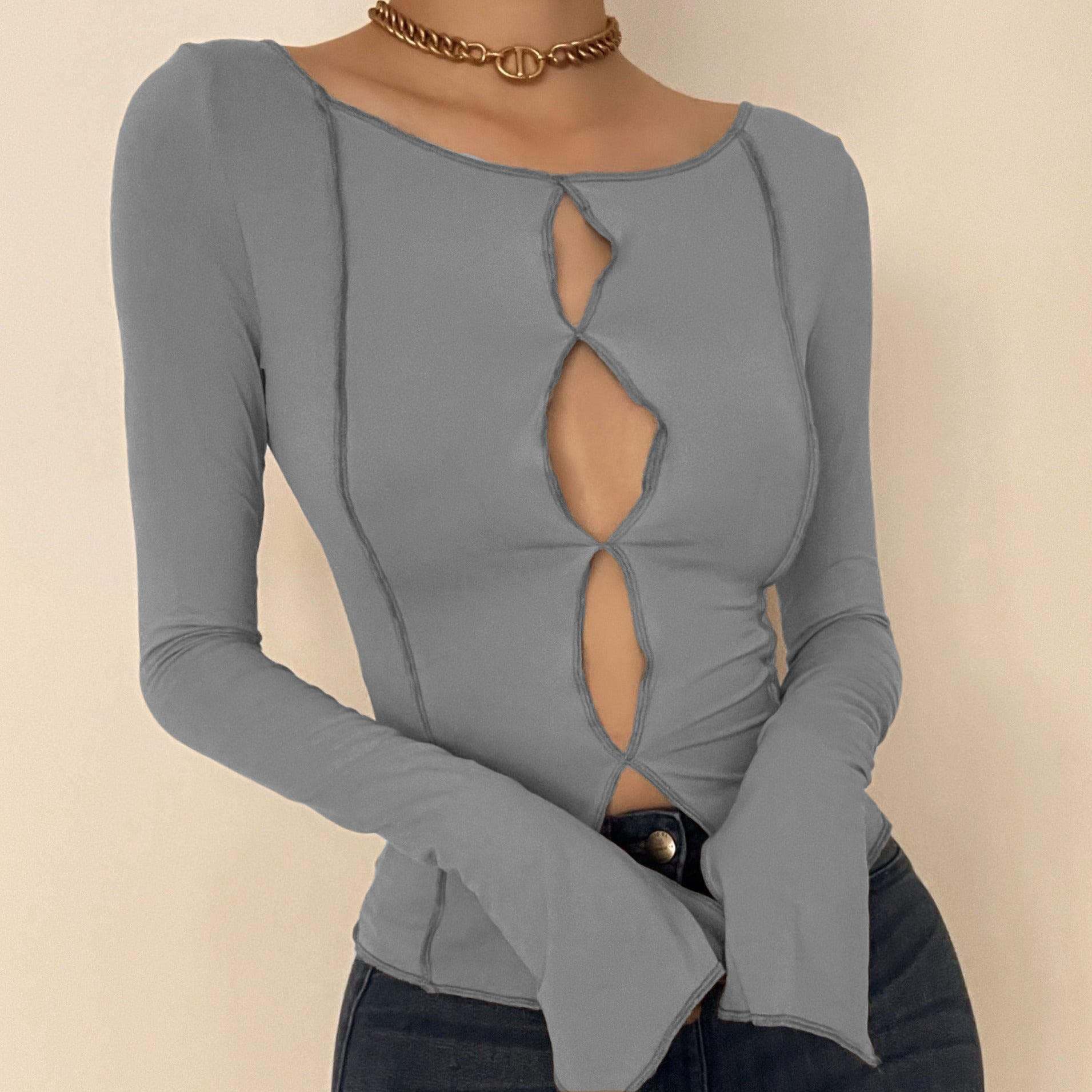 Cutout Long Sleeve Reversible T-Shirt