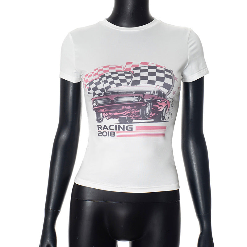 European And American Leisure Round Neck Cycling Printed Tight T-shirt