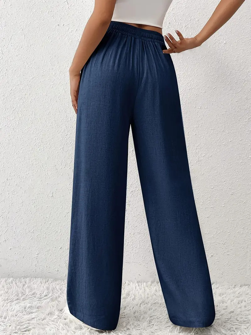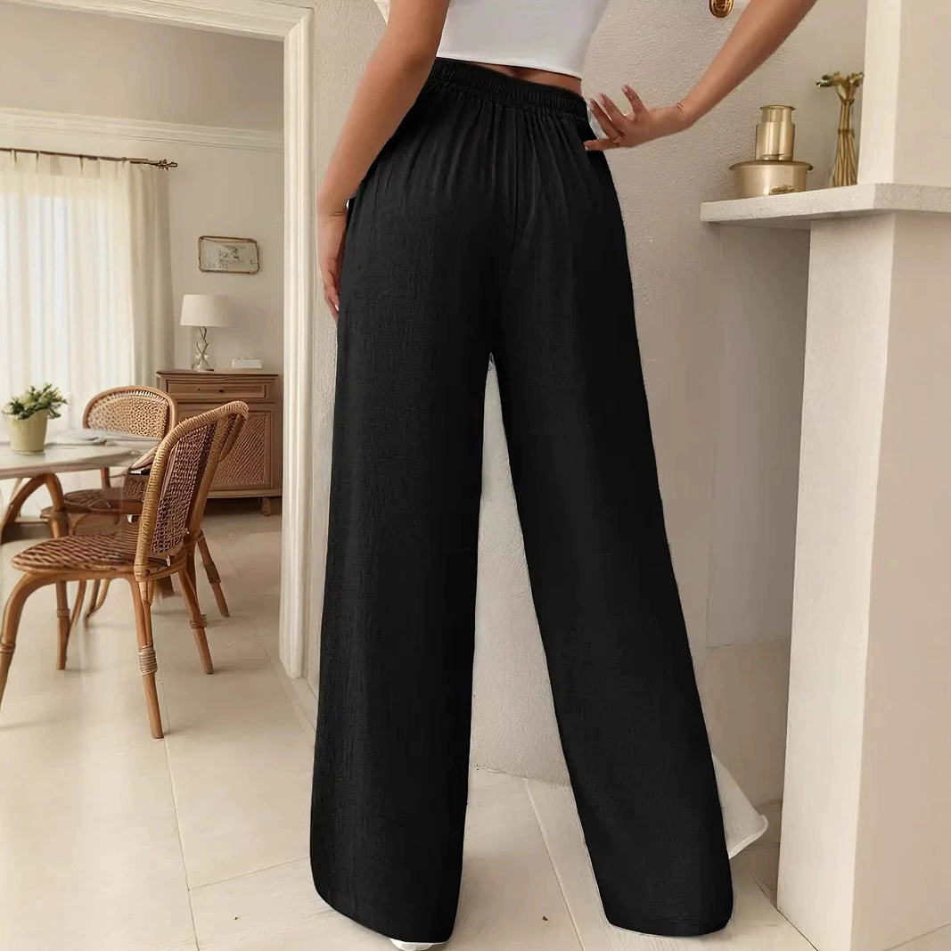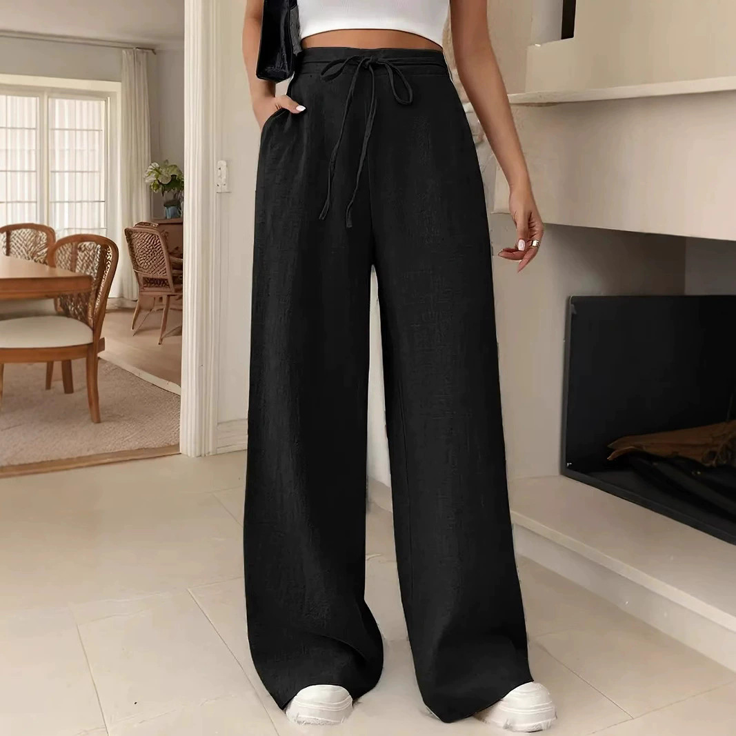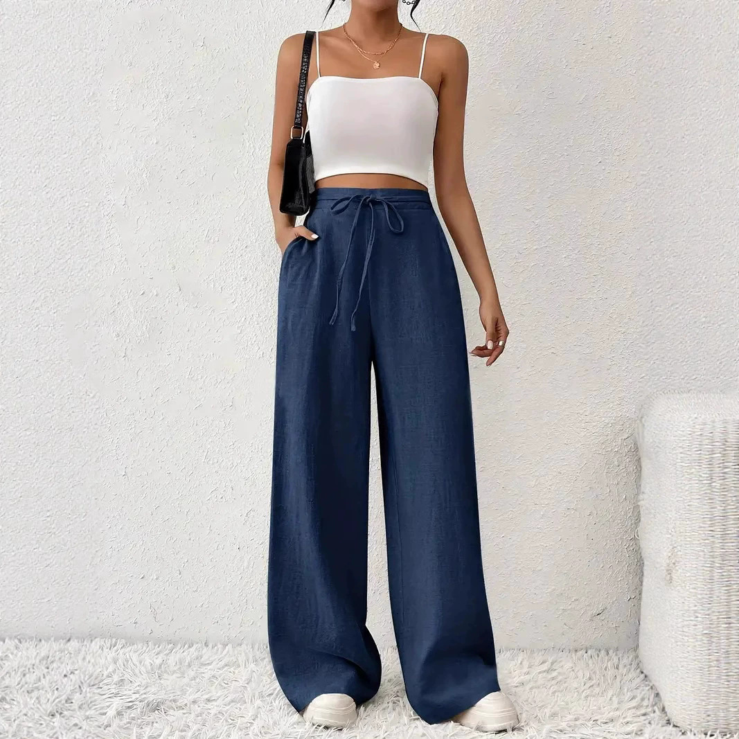 European And American Women's Clothing Casual Wide Leg Lace-up Pocket Casual Pants