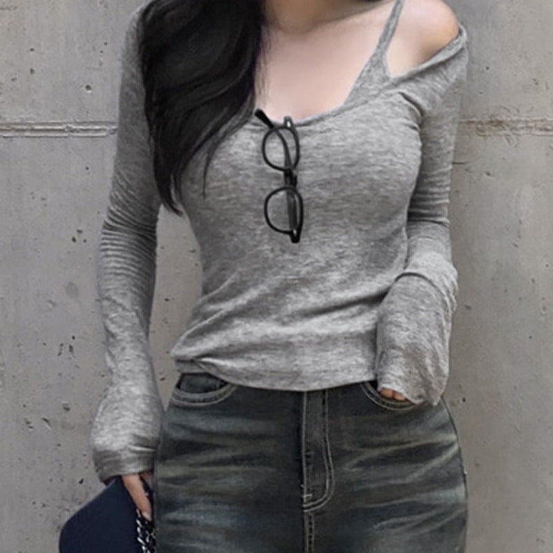 Fake Two Pieces Bandage Dress Slim Fit Versatile Bottoming Top