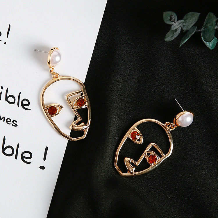Handmade artistic design exaggerated hollow face contour modeling pearl earrings fun funny earrings