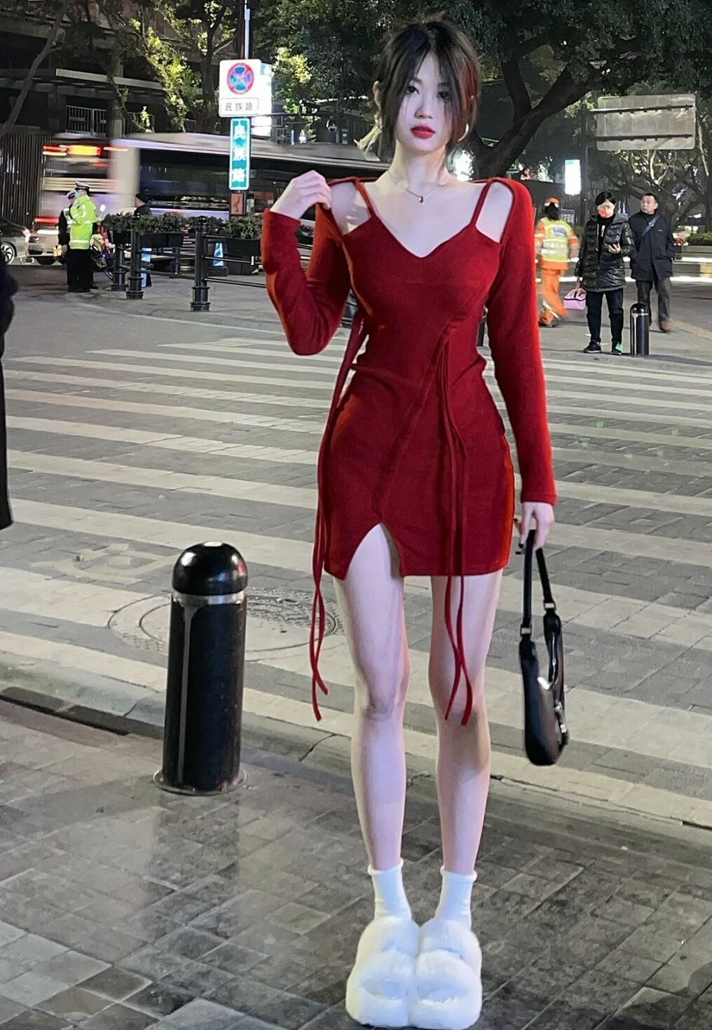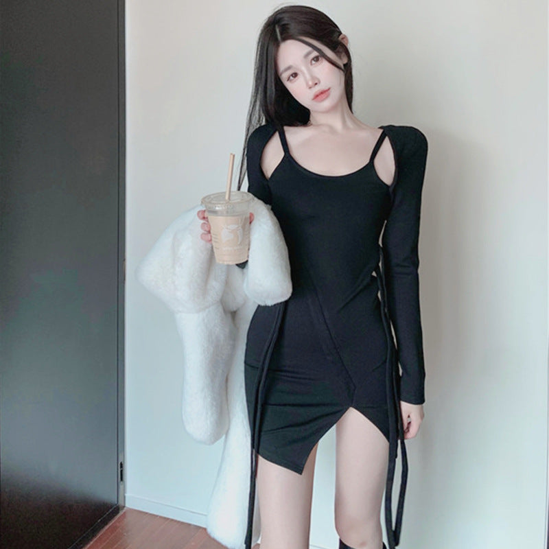 Hot Girl Stitching Irregular Slit Slim Fit Slimming Hip Skirt