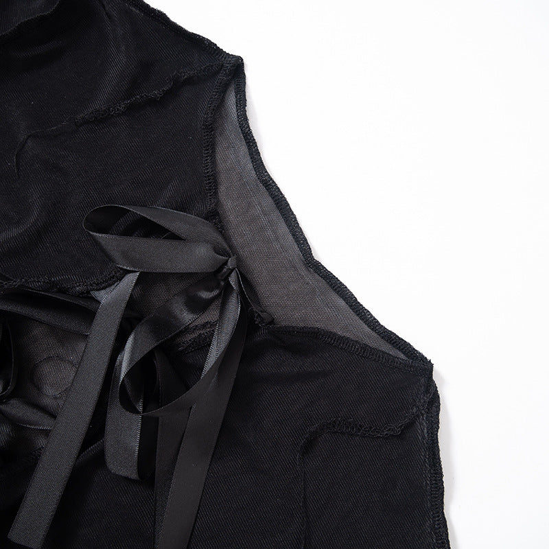 Long Sleeve Mesh Tie Two Piece Skirt Set