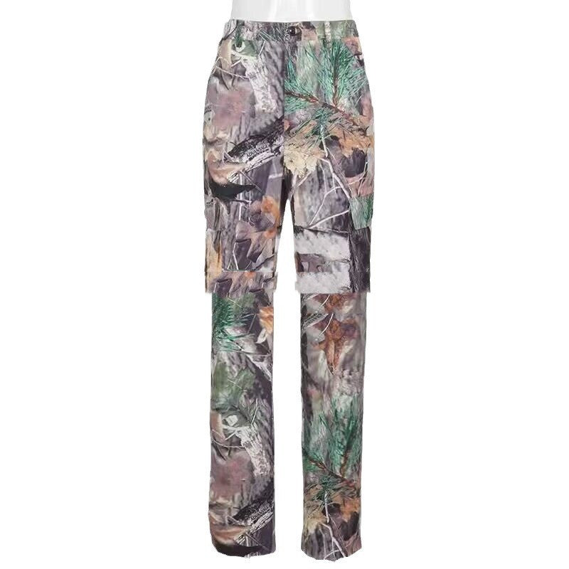 Loose Casual Workwear Pants With Leaf Print Pockets