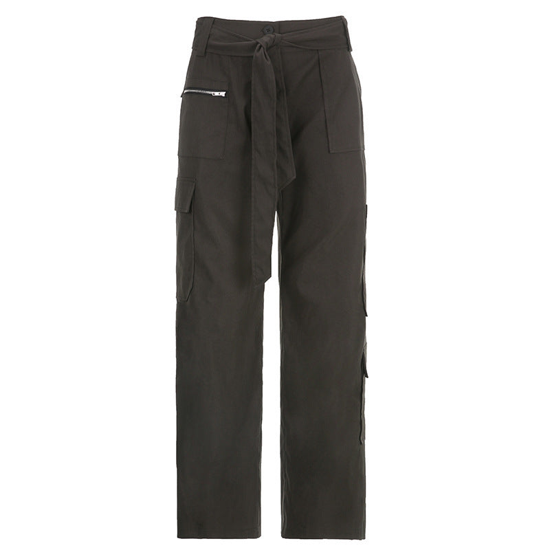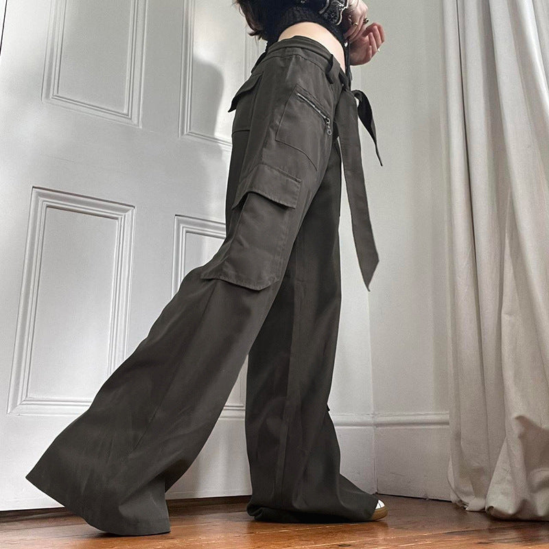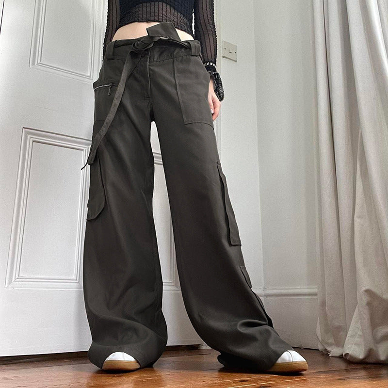 Lounge Pants Lace-Up Low Rise Asymmetric Pocket Loose Cargo Pants