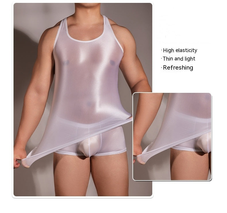 Men's Lingerie Tight Clothes Super Elastic Vest Short Sleeve Temptation
