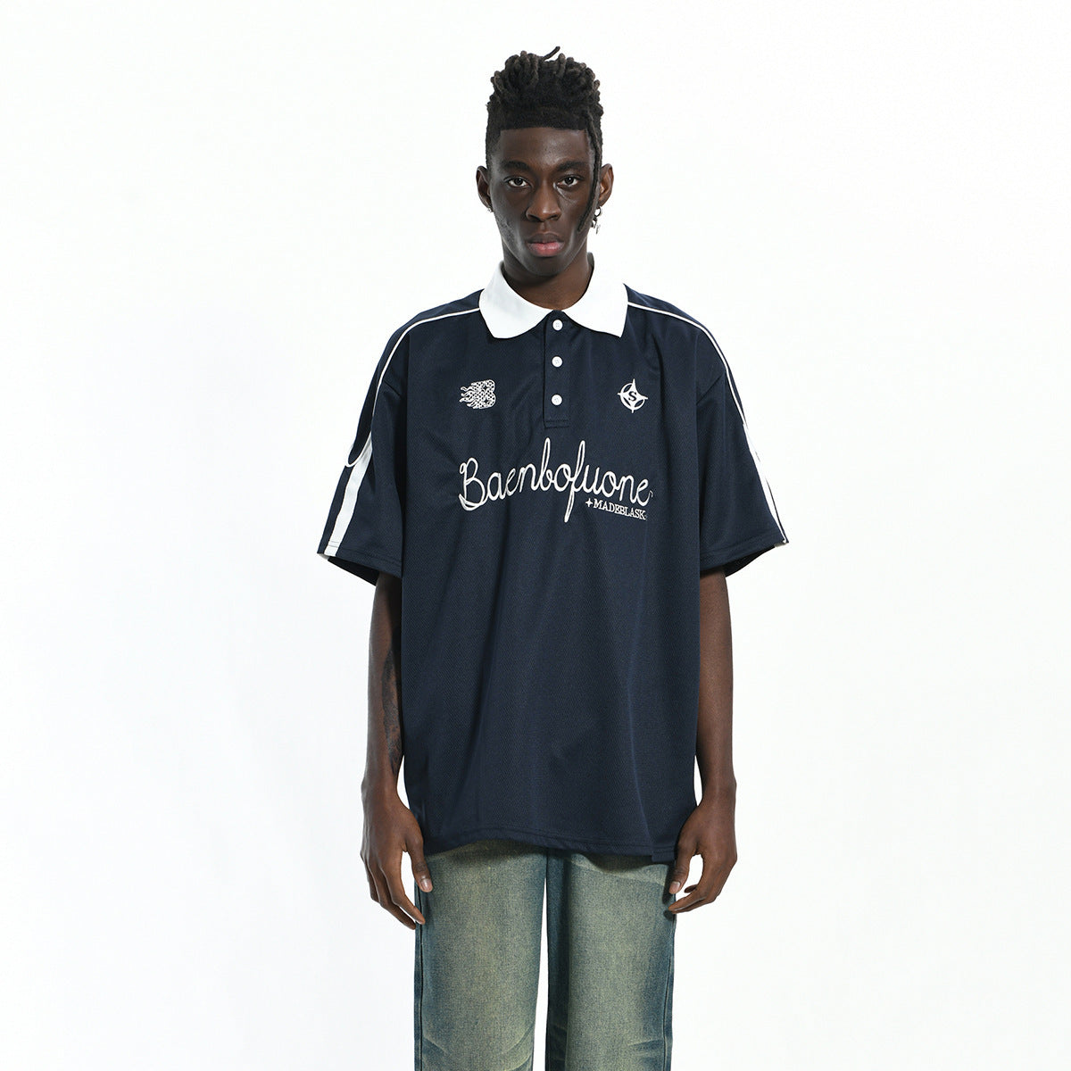 Men's Retro Fashion Brand Lapel T-shirt Color Matching