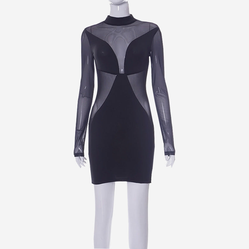 New Style Pure Color Mesh Sexy Slim Short Dress