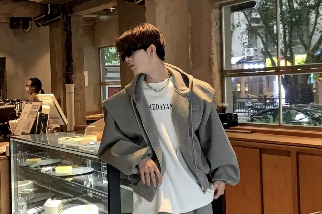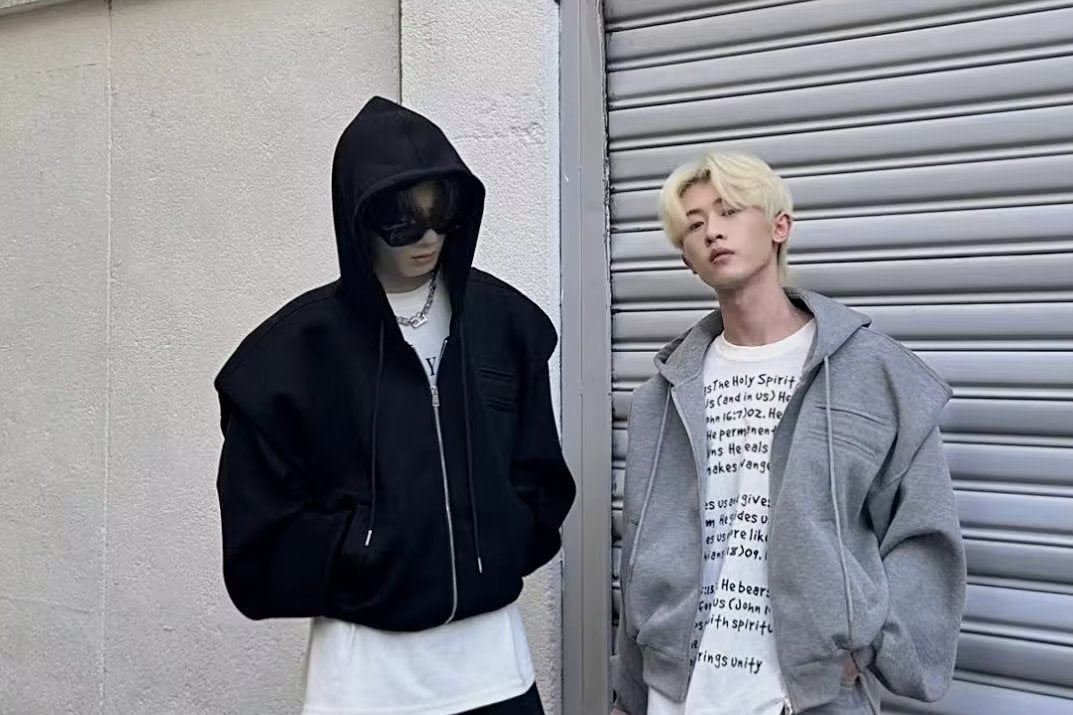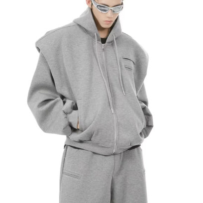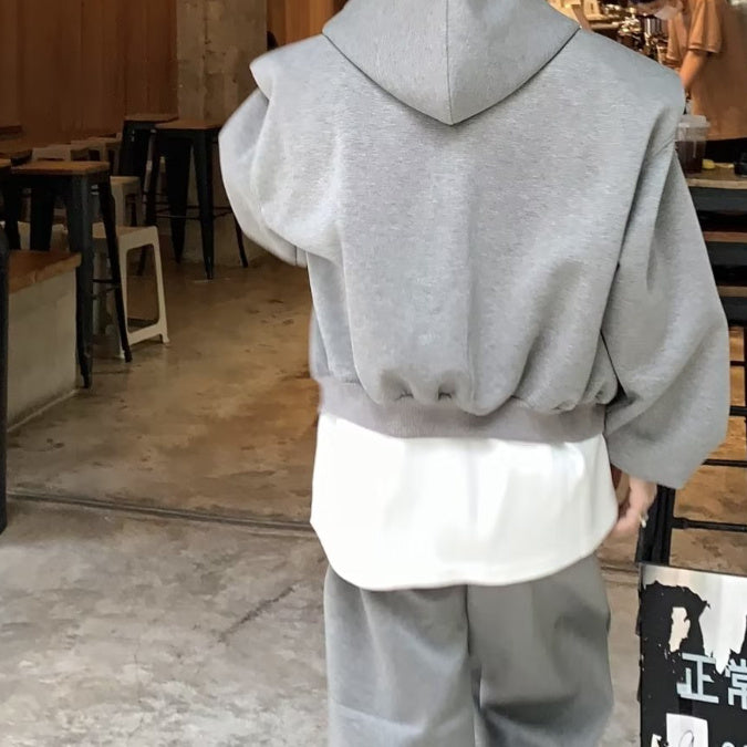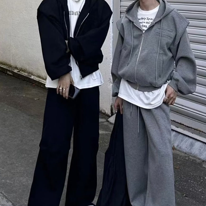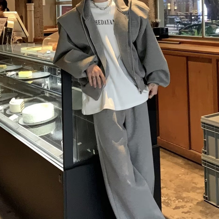 Niche High-end Hooded Loose Thick Shoulder Hooded Cardigan Trousers Two-piece Set