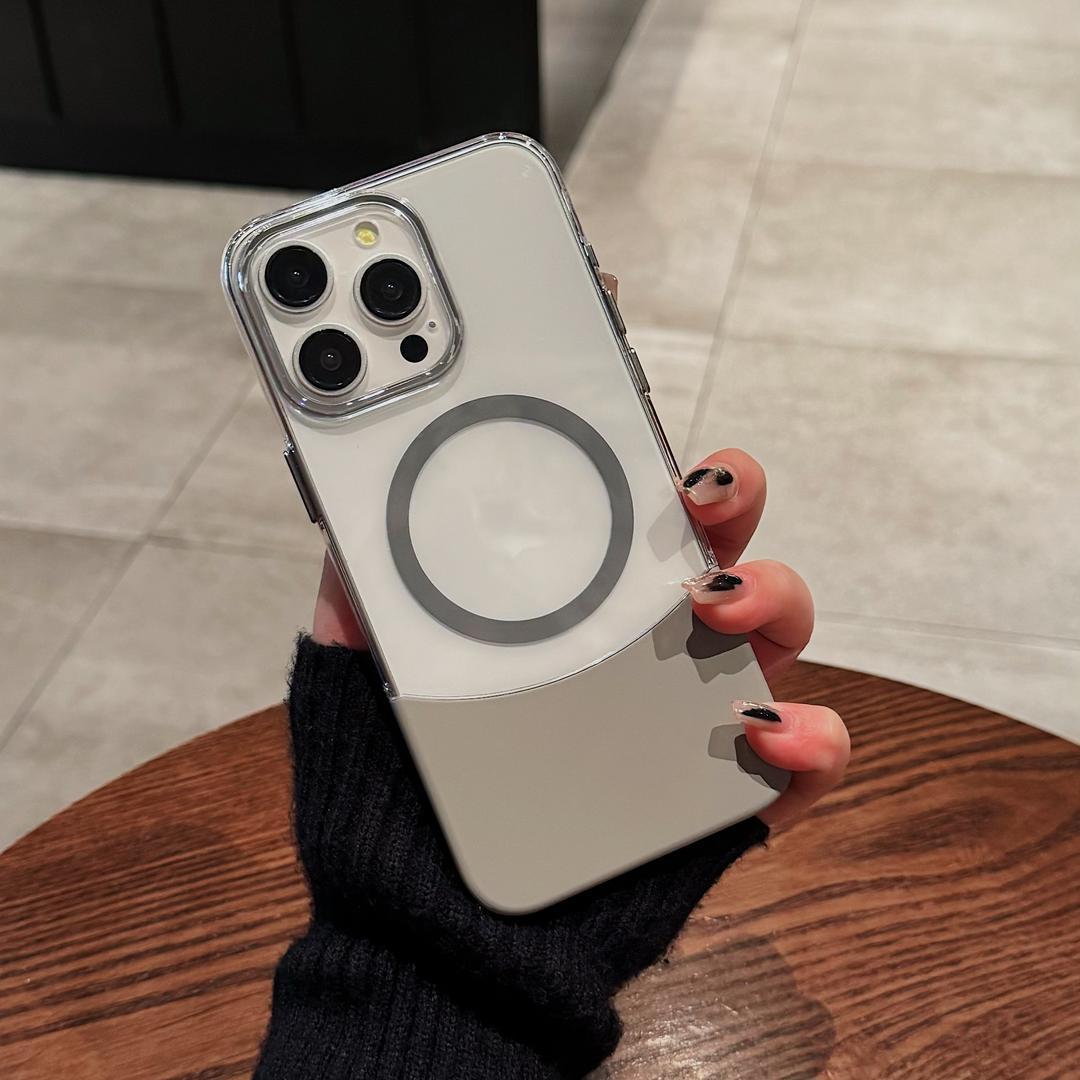 Phone Case Magnetic Up And Down Plug AF Transparent Stitching Two-color Protective Sleeve