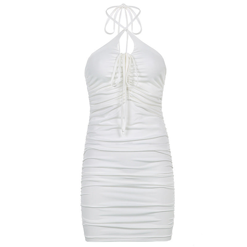 Pure Color Chest Hollow Pleated Waist Thin Hip Women's Casual Short Skirt