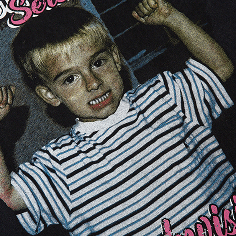 Retro Distressed Printed Short Sleeve Men