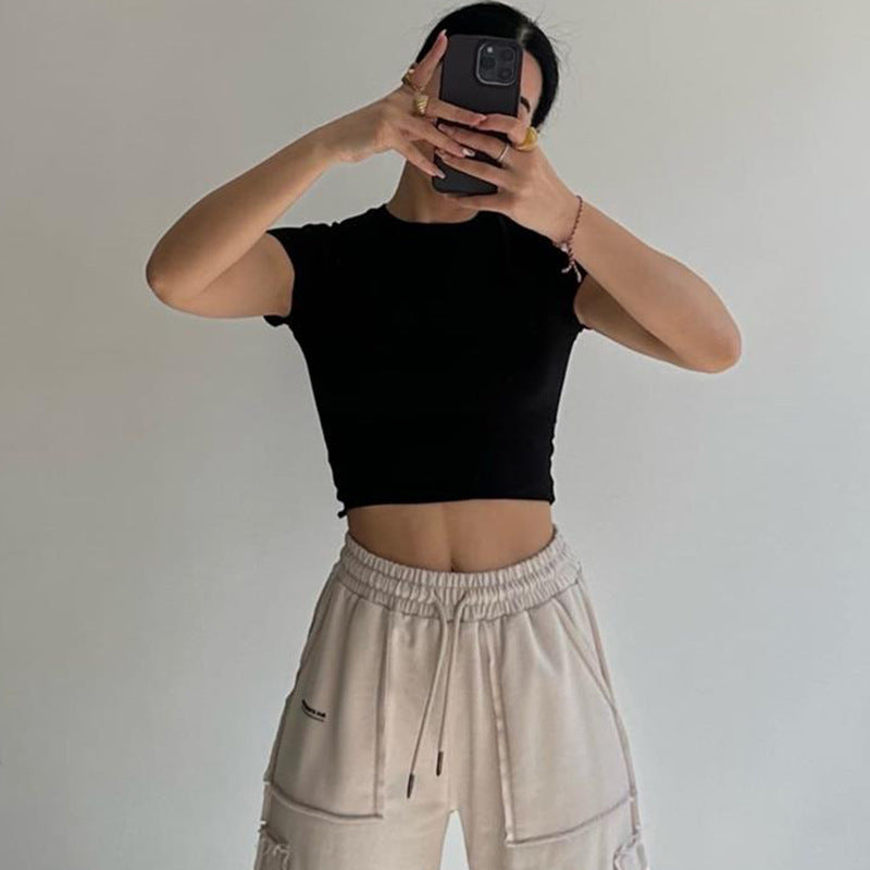 Round Neck Short Sleeve T-Shirt Versatile Casual Cropped Top