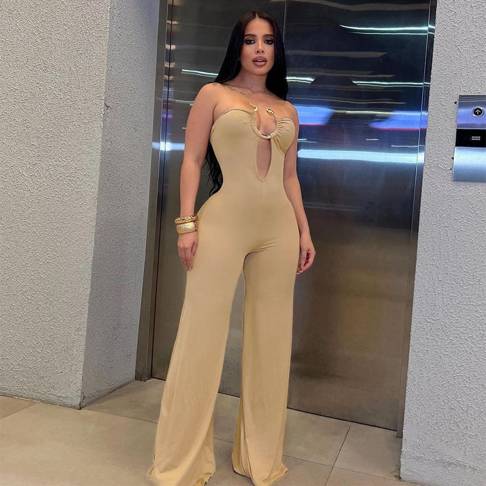 Sleeveless Hollow Metal Decorative Jumpsuit