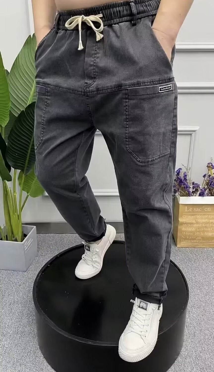 Spring Plus Size Loose Straight Casual Pants Solid Color Denim Trousers