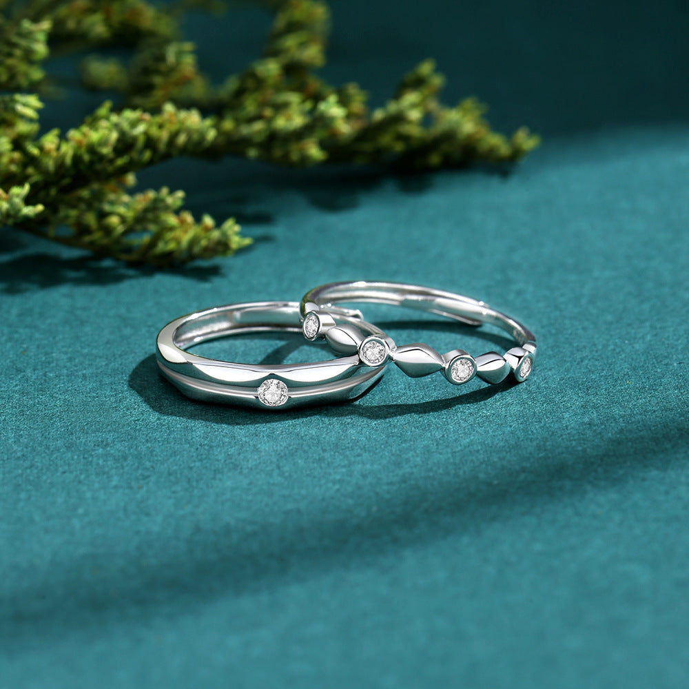 Square And Round Couple Affordable Luxury Fashion Zircon Diamond S925 Silver Ring