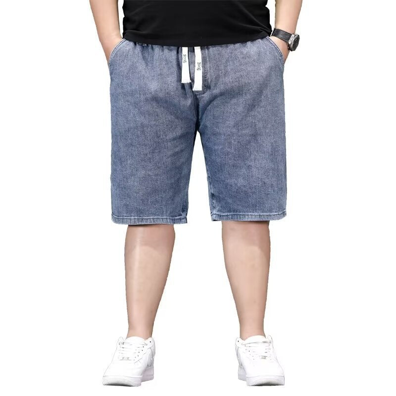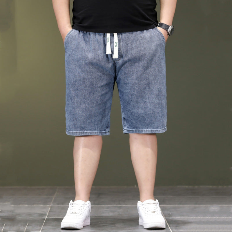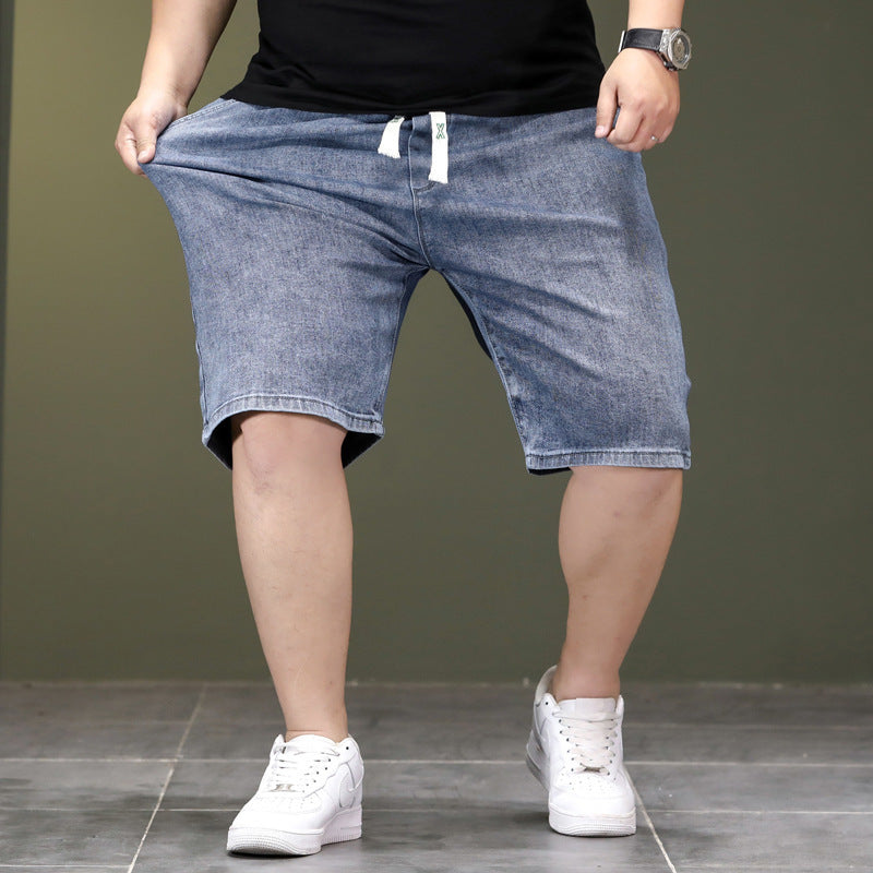 Summer Thin Plus Size Elastic Waist Denim Shorts Men