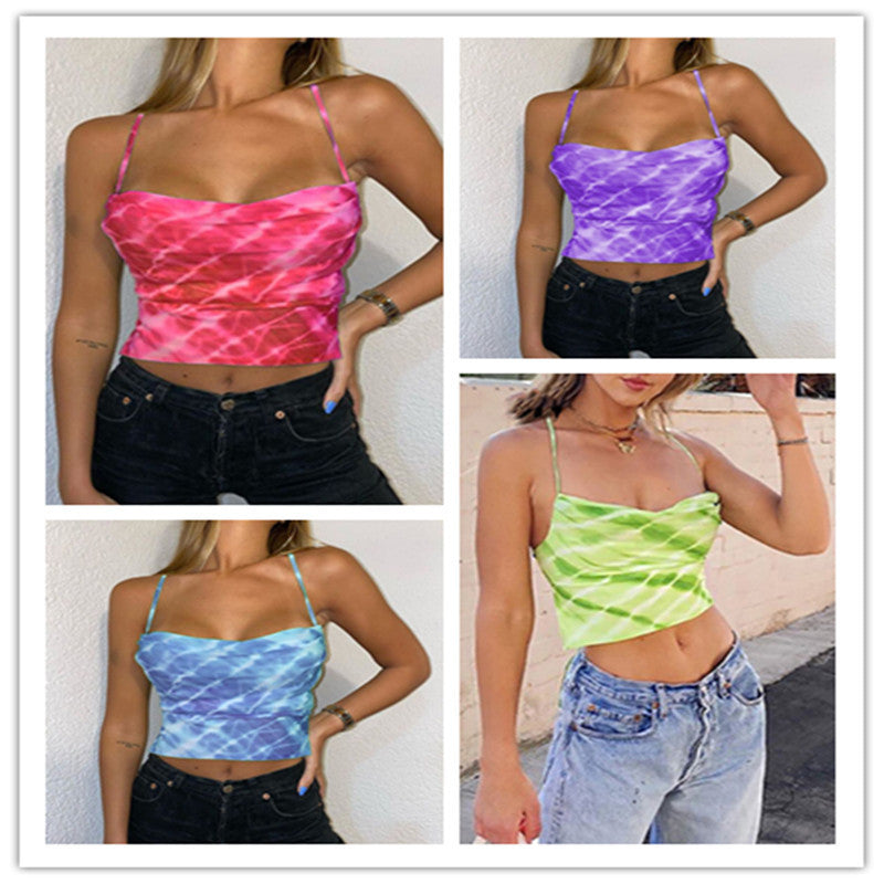 Summer Tie-dyed Off-neck Backless Camisole
