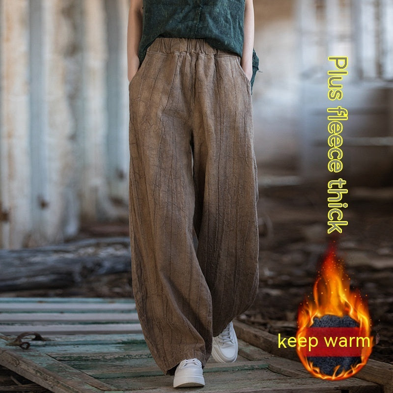 Tie-dyed Old Padded Fleece Trousers Winter Cotton And Linen Women's New
