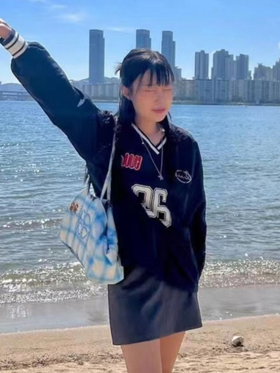 V-neck Baseball Sweater Women's Fashion Shell Jacket