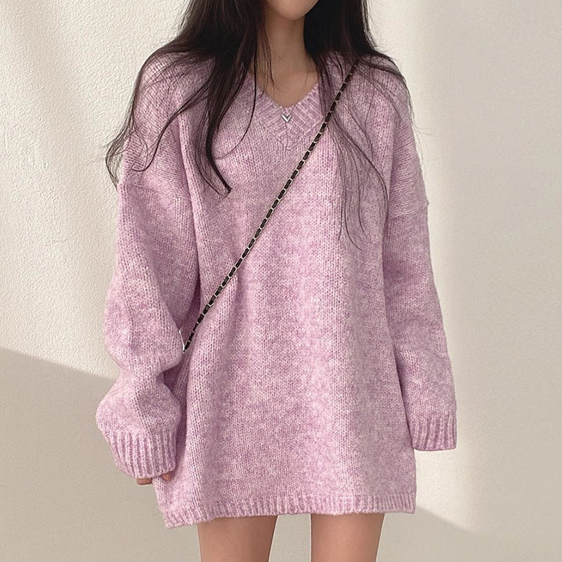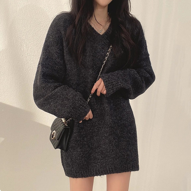 Wind V-neck Soft Glutinous Loose Small Knitted Dress Sweater