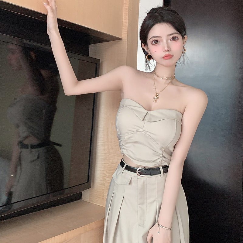 Women's Design Sense Slimming High Waist With Belt Long Skirt Tube Top Two-piece Set